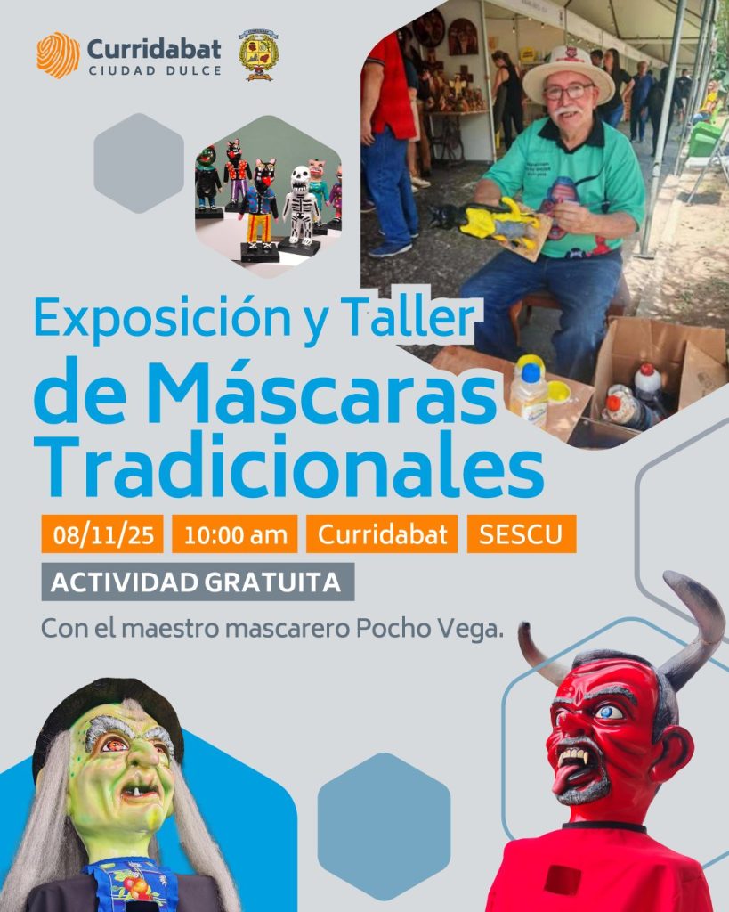 El próximo sábado 8 de noviembre, en el edificio de Servicios Sociales y Culturales (SESCU), se llevará a cabo un taller y exposición de mascaradas a cargo de Alfonso “Pocho” Vega, reconocido mascarero e Hijo Predilecto del cantón de La Unión.