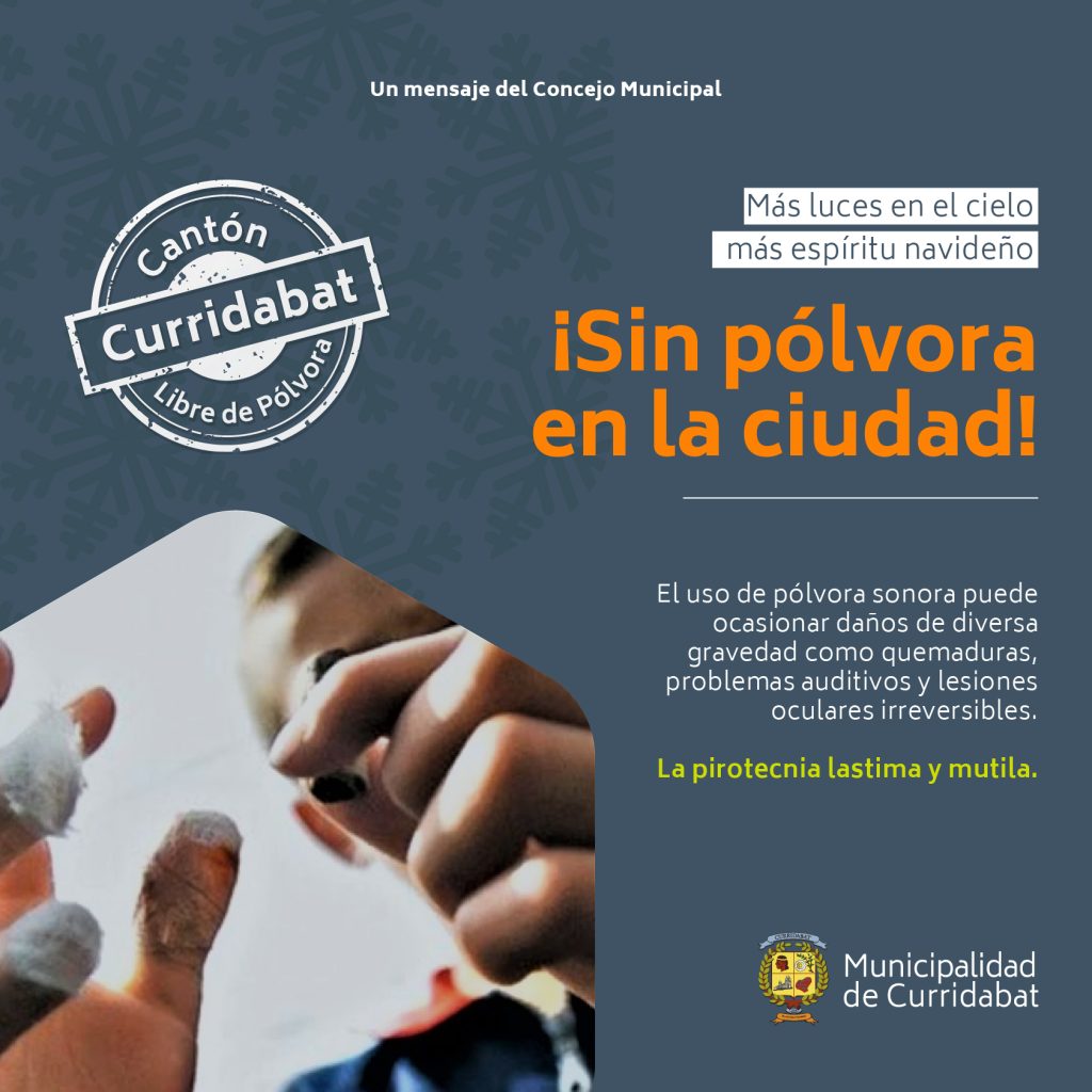 Ante estos efectos, el Concejo Municipal de Curridabat mantiene vigente un acuerdo que prohíbe el uso y la venta de pólvora sonora en todo el cantón, según lo aprobado de forma unánime en el Acuerdo N.° 1, adoptado en la sesión del 15 de noviembre de 2023, con base en un dictamen de la Comisión de Asuntos Jurídicos.